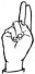 На ћирилици написано МОМИРА ЦРНИШАВАЦ састоји се из 15 слова [?]. Исписано ћириличном једноручном азбуком за глувонеме: